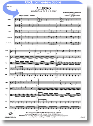 Ideal as a concert opener or closer, this energetic work features strong rhythms and vibrant harmonies as the true genius of Johann Christian Bach shines through. Conductors can choose a tempo that fits their groups well without losing the engaging nature of the work. Certain to be a performer and audience favorite!