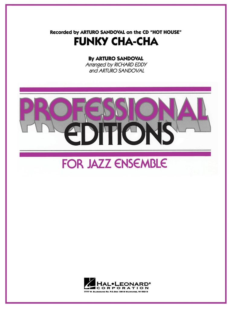With Arturo Sandoval's newest CD "Hot House" the trumpet master strongly asserts himself as a force to be reckoned with in the area of big band jazz. This is the lead-off tune to the CD and it combines the traditional Cuban dance style with a bit of contemporary funk. The result is a sultry mix that is both dynamic and powerful. Includes solos for Tenor and Trumpet.