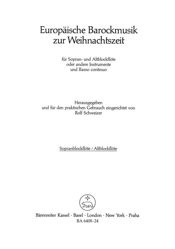 Europäische Barockmusik zur Weihnachtszeit Neun Kompositionen für Sopranblockflöte, Altblockflöte und Basso continuo. S-Bfl/A-Bfl(oktaviert notiert)- (Recorder 1)